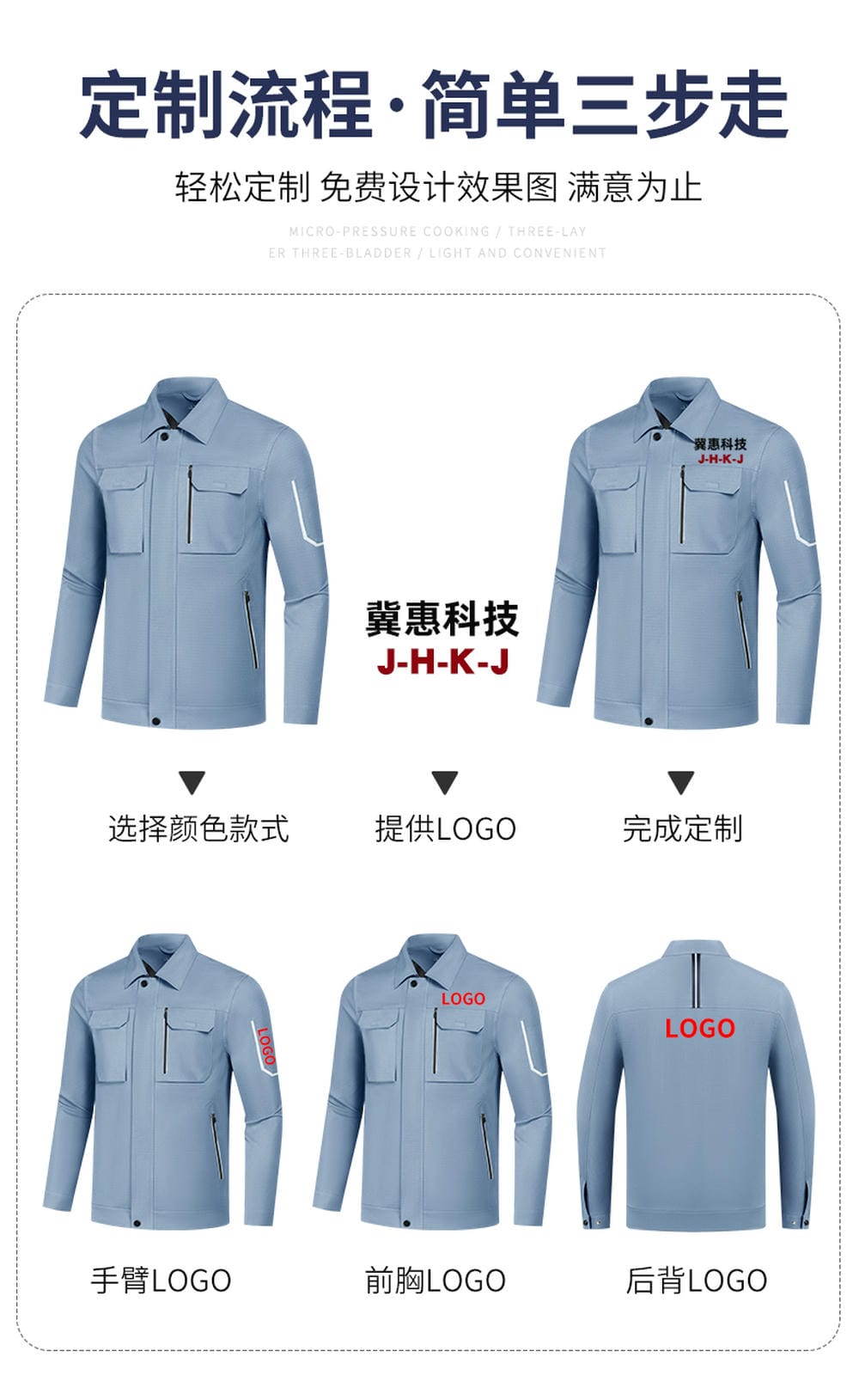 支持來圖來樣定制,根據企業文化和團隊特色進行個性化設計,讓工作服成為企業形象的流動廣告。